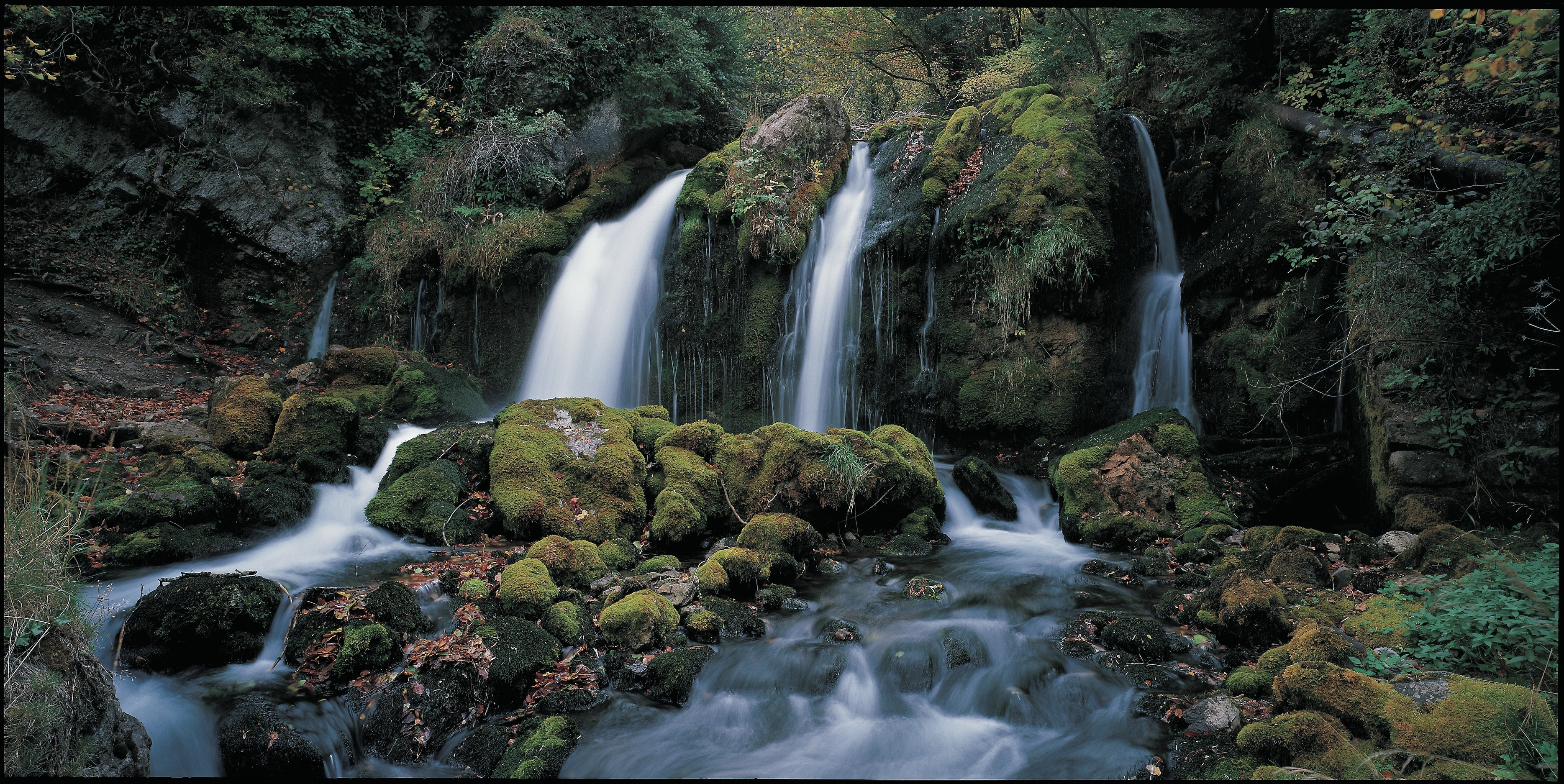 Mit der gesamten Kraft der Natur entspringt das Quellwasser des Flusses direkt den Abhängen rund um Castellar de n’Hug und bildet einen strömenden Wasserfall.
