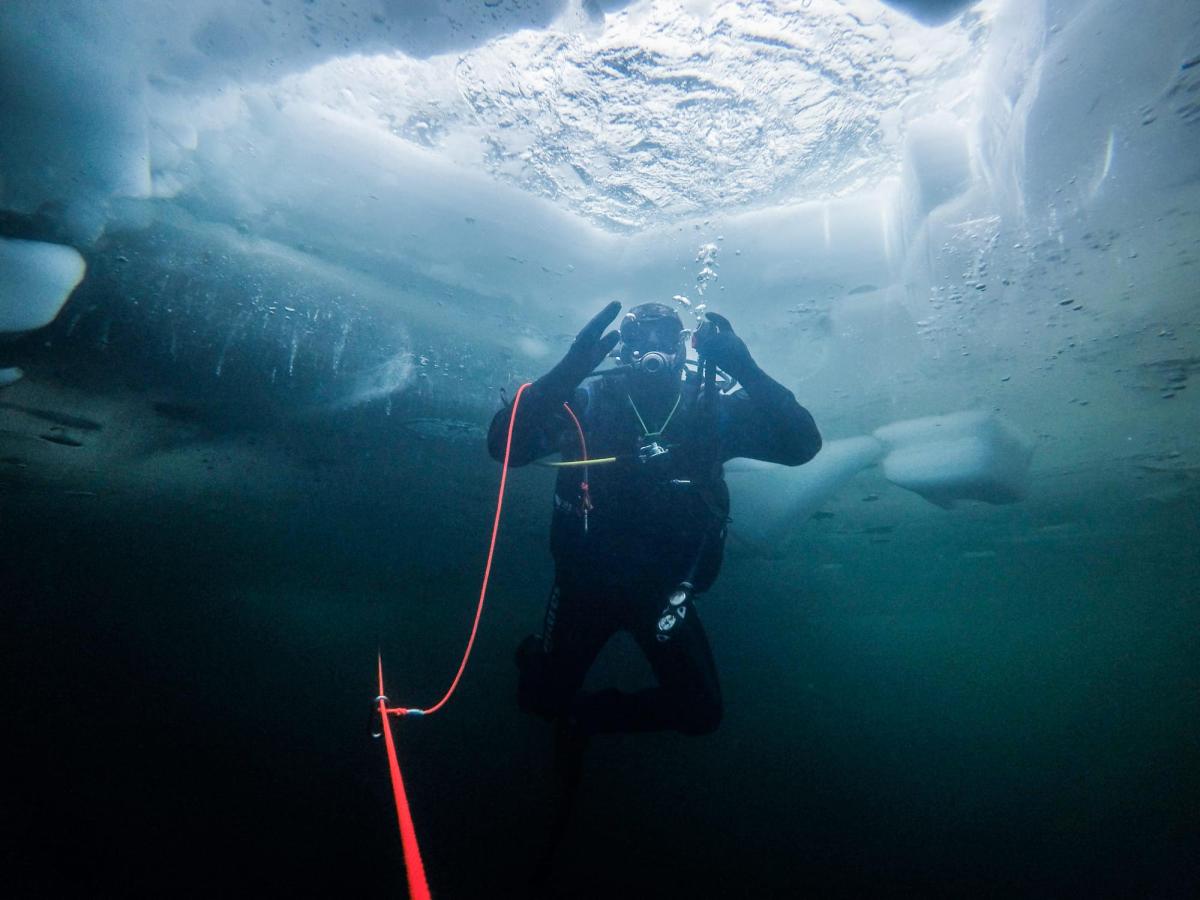 Los contrastes de luz bajo el hielo son espectaculares. Los rayos de sol que se cuelan por los agujeros en el hielo y el oxígeno atrapado en la capa helada de agua producen un efecto casi caleidoscópico.