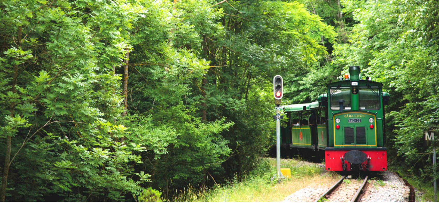 L'antic Tren del Ciment té un recorregut de 3,5 km i disposa de 4 estacions: La Pobla de Lillet, la Pobla Centre, Jardins Artigas i Museu del Ciment-Castellar de n'Hug.