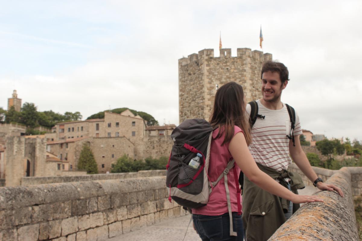 Wir verlassen Sant Pere de Rodes und fahren nach Besalú, wo wir eine der schönsten mittelalterlichen Kulissen Kataloniens vorfinden. Die befestigte Brücke über den Fluss Fluvià steht wie zu unserem Empfang bereit und spiegelt sich im Wasser. Bei unserer Ankunft am frühen Abend strahlt der Himmel in goldenen und bläulichen Tönen und die Scheinwerfer zur Beleuchtung der Brücke schalten sich nach und nach ein, ebenso wie die Straßenlaternen in der Altstadt. Die Touristen beginnen abzureisen und hinterlassen einen beinahe geisterhaften Ort. Dies ist der beste Zeitpunkt, die romantische Seite von Besalú zu entdecken.