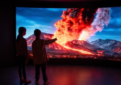 Ergänzt wird das Angebot durch immersive Formate wie Cràter 360, das eine Reise zu außergewöhnlichen Vulkanen weltweit ermöglicht – von submarinen Vulkanen bis hin zu außerplanetarischen Landschaften – sowie durch Virtual-Reality-Brillen zur Erkundung verschiedener vulkanischer Orte in der Garrotxa. Ein geeigneter Ausgangspunkt, bevor man die Vulkane und Landschaften der Region selbst erkundet, etwa den nur wenige Gehminuten entfernten Vulkan Montsacopa.