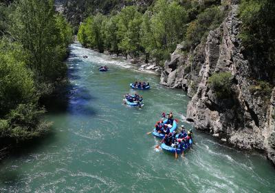 On the rafting descent of the 14 km stretch from Llavorsí to Rialp, you will discover the emotions of whitewater in group, in the most fun and safe way. A section to live the authentic whitewater experience. After that, you could enjoy a good meal in the best company.