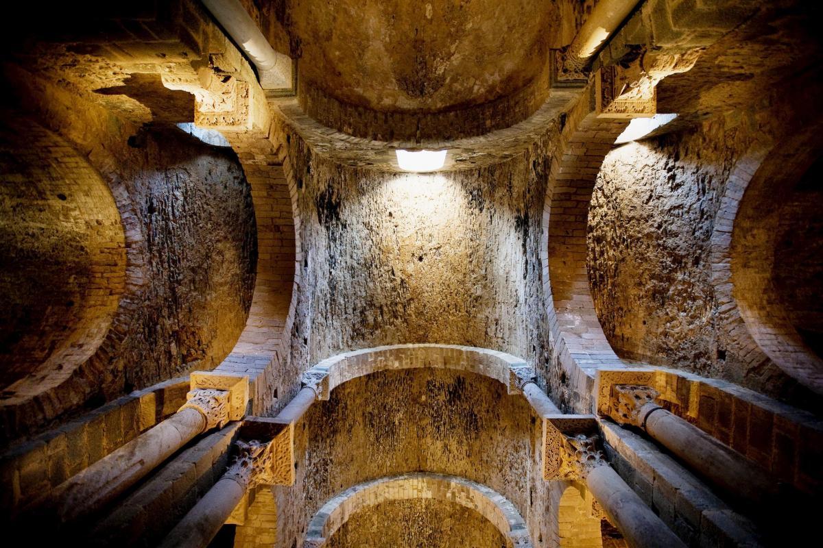 La iglesia, el campanario, la torre del homenaje, los dos claustros, la cripta, la antigua bodega, el palacio del abad, las sacristías, las celdas de los monjes... cada espacio cobra vida cuando lo visitamos de la mano de uno de los guías del monasterio, que adereza con historias y anécdotas la entrada en cada dependencia. Así descubrimos, para empezar, que nos encontramos en un monasterio benedictino, es decir, que los monjes que vivían en él seguían la regla de San Benito, haciendo vida contemplativa y dedicando su tiempo a trabajar y rezar. También nos enteramos de que la primera noticia del monasterio data del año 878 y que con el tiempo se convirtió en uno de los más importantes del condado de Empúries, centro de poder feudal y espiritual. Entre sus dominios estaba el pueblo de Santa Creu de Rodes, dedicado al comercio y a la producción artesana, que entre los siglos xii y xiv, gracias a los peregrinajes, disfrutó de una gran prosperidad y llegó a tener hasta unos 250 habitantes. Nos maravillamos a cada paso disfrutando de las formas elegantes y austeras del románico lombardo, pero quedamos especialmente fascinados contemplando la portalada de la iglesia, decorada con esculturas de mármol blanco, obra del Maestro de Cabestany, y su interior, donde nos sentimos pequeños e insignificantes ante la amplísima nave cubierta con una imponente bóveda de cañón apoyada sobre grandes pilares con columnas adosadas.