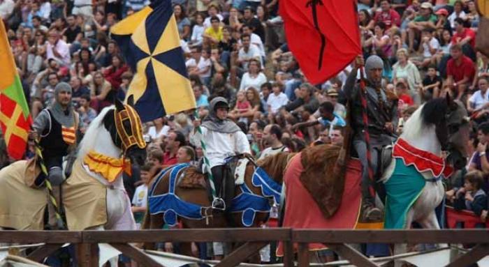 Las calles se llenan de música y actuaciones para todos, con trovadores, juglares, malabaristas y bufones. En el centro histórico, el mercado medieval atrae vecinos y extranjeros alrededor de los tenderetes de artesanos y comerciantes, en los que incluso se paga con reproducciones de monedas antiguas.