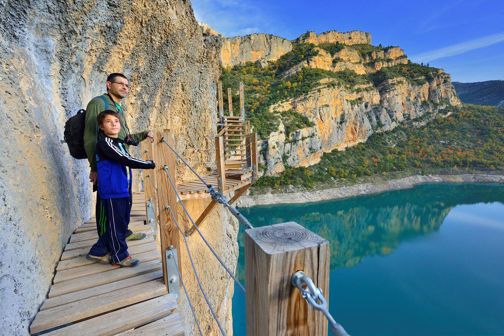 Les lieux : le seul grand défilé de Catalogne demeuré vierge et que ne traverse ni route, ni chemin de fer, ni ligne électrique. Le décor : une rivière, deux rochers imposants et une vue à couper le souffle. La bande-son : un silence que seuls viennent briser les battements d’ailes des oiseaux de proie qui hantent les lieux, comme le gypaète barbu ou le vautour. Les acteurs et les actrices : quiconque est disposé à vivre une aventure, déconseillée à ceux qui ont le vertige, mais encadrée et sûre pour tous les publics. Le spectacle est sur le point de commencer.
